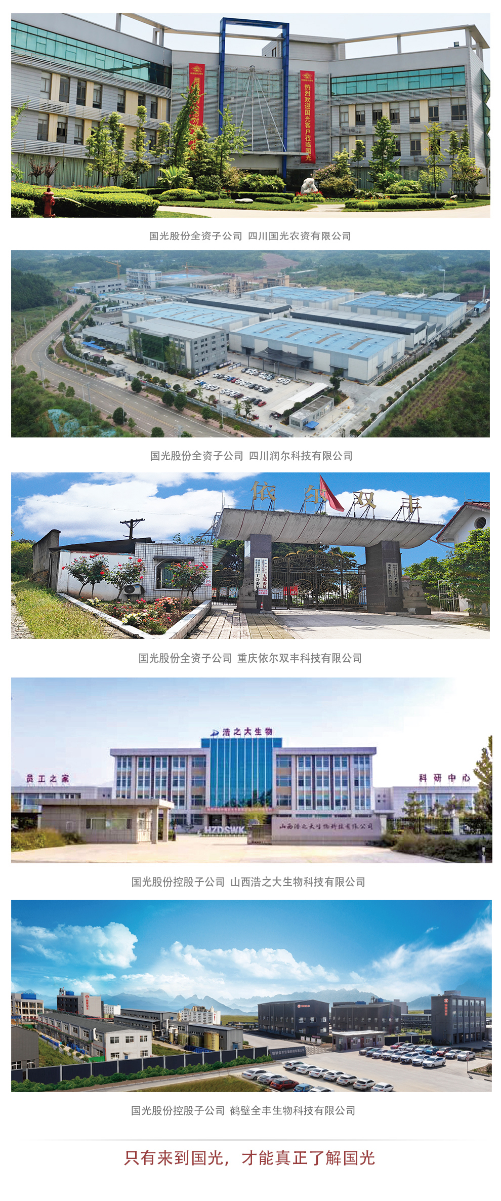 公司下屬的四川國光農(nóng)資有限公司、四川國光園林科技有限公司、四川潤爾科技有限公司、重慶依爾雙豐科技有限公司、山西浩之大生物科技有限公司、鶴壁全豐生物科技有限公司、四川蕓領農(nóng)業(yè)技術服務有限公司、成都國光現(xiàn)代農(nóng)業(yè)職業(yè)技能培訓學校有限公司等十五家公司分布于四川省、山西省、河南省、海南省、重慶市等。ㄖ陛犑校⒃谌珖O有二十五個物流倉儲服務中心。公司堅持“敬業(yè)、高效、務實、創(chuàng)新”的企業(yè)精神,聚焦調節(jié)劑、水溶性肥料、園林養(yǎng)護品等優(yōu)勢品類,堅持“全員服務、創(chuàng)造價值;全心服務,成就用戶”的服務理念,突出技術服務的核心作用,產(chǎn)品在配合綠色防控、提質減量、抗災減害、減少人工、配合機械化等方面起著重要作用,“國光”“雙豐”“浩之大”“國光園林”“鶴壁全豐”品牌影響力持續(xù)擴大。
