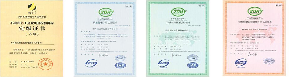國光視產(chǎn)品為企業(yè)生命。公司通過了ISO19001質(zhì)量管理體系認(rèn)證,對產(chǎn)品生產(chǎn)流程進(jìn)行嚴(yán)格的質(zhì)量管理。國光質(zhì)管部是國家石油和化學(xué)工業(yè)協(xié)會認(rèn)定的“A級質(zhì)檢機(jī)構(gòu)”,配備了Agilent1100、1200A、1200B、1200C液相色譜儀、Agilent 6820氣相色譜儀、原子吸收分光光度計(jì)、原子熒光光譜儀等現(xiàn)代化的檢驗(yàn)檢測設(shè)備。同時強(qiáng)化企業(yè)標(biāo)準(zhǔn)化建設(shè)和計(jì)量管理以確保產(chǎn)品質(zhì)量。 |