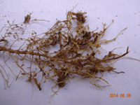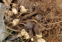 癥狀:花生根結(jié)線蟲(chóng)病主要為害植株的地下部,因地下部受害引起地上部生長(zhǎng)發(fā)育不良。幼苗被害,一般出土半個(gè)月后即可表現(xiàn)癥狀,植株萎縮不長(zhǎng),下部葉變黃,始花期后,整株莖葉逐漸變黃,葉片小,底葉葉緣焦灼,提早脫落,開(kāi)花遲,病株矮小,似缺肥水狀,田間常成片成窩發(fā)生。雨水多時(shí),病情可減輕。