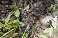 癥狀:病害多在花生成株期發(fā)生,主要為害莖部、果柄及莢果。發(fā)病初期病部變褐軟腐,其上出現(xiàn)波紋狀病斑。病斑表面長(zhǎng)出一層白色絹狀絲菌絲體,在合適條件下菌絲蔓延至植株中下部莖桿,并在分枝間、植株間蔓延。土壤潮濕隱蔽時(shí),病株周?chē)帘碇参餁報(bào)w和有機(jī)質(zhì)上也布滿一層白色菌絲體。在菌絲體中形成很多球狀菌核。受害莖基部組織腐爛,皮層脫落,剩下纖維狀組織。病株葉片變黃,邊緣焦枯,最后枯萎而死,受侵害果柄和莢果長(zhǎng)出很多白色菌絲,呈濕腐狀腐爛。