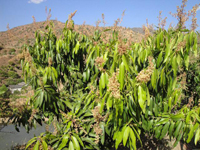 修剪不到位導致枝梢老化程度不夠,開花結(jié)果差 修剪不到位導致枝梢過長、樹型差、產(chǎn)量低、大小年嚴重早中熟芒果(海南、廣西)結(jié)果母枝培養(yǎng)一般都一般控制在兩蓬梢。在生產(chǎn)中借助土埋多效唑和葉面控梢的處理基本能實現(xiàn),如果出現(xiàn)沖梢,即可以藥物方式處理。中晚熟芒果由于一般沒有進行控梢處理,所以抽梢比較不統(tǒng)一,梢體一般在前一蓬梢老熟半月左右后又自然抽出一蓬,平均抽梢4-5蓬,甚至有6蓬以及以上的抽梢情況。在中晚熟芒果產(chǎn)區(qū)見到的長梢樹體則因為此。