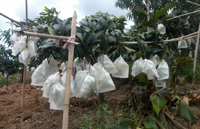 2、在第二次生理落果后,剪除影響果實發(fā)育的花梗與枝條,疏除畸形果,病蟲果及過小的敗育果,兩個果粘在一起的易拈惹蟲害,應(yīng)去除一個,一穗果保留3-4個發(fā)育正常的果即可。對未結(jié)果或開花不結(jié)果的枝條可酌情短截,促進抽梢,培養(yǎng)來年的結(jié)果母枝,也可增加樹冠的透光度。
