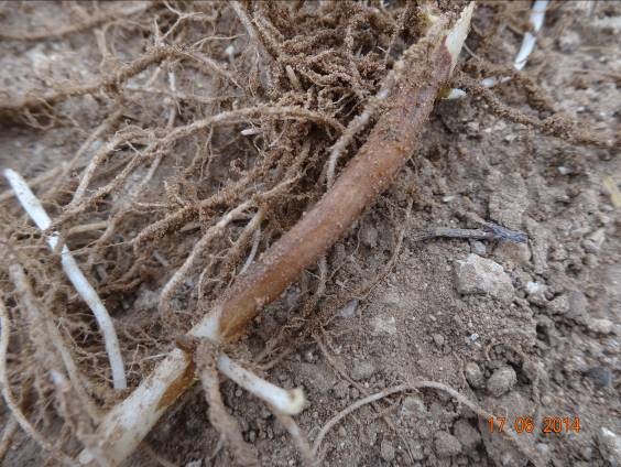 未用藥區(qū),病斑仍然為鈣化,有部分病斑出現(xiàn)腐爛狀