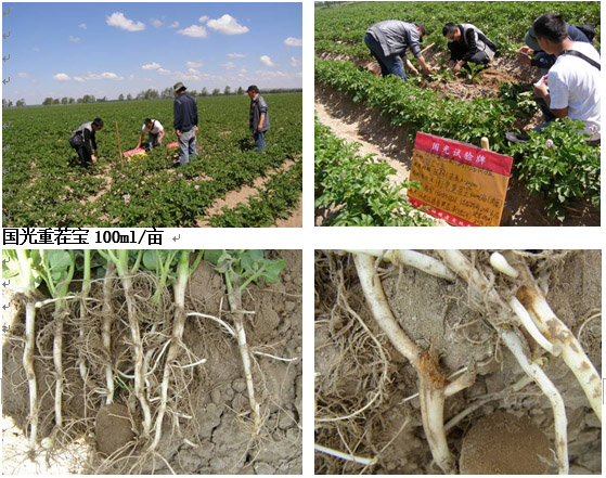 4、 根據(jù)以上說明:重茬寶200ml/畝能有效控制馬鈴薯黑痣病的發(fā)生和發(fā)展。