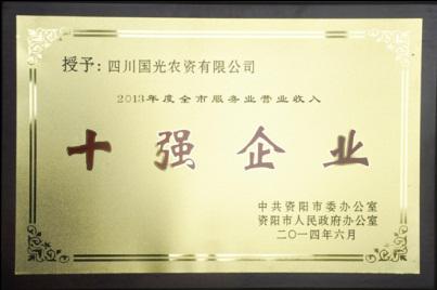 我公司的全資子公司“四川國光農(nóng)資有限公司”被評(píng)為2013年度資陽市“服務(wù)業(yè)營業(yè)收入十強(qiáng)企業(yè)”,在會(huì)上受到表彰。