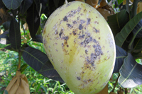 發(fā)病規(guī)律:煤煙病為一類統(tǒng)稱煤煙菌的病原真菌感染所致。這類真菌有性階段屬子蘘菌亞門;無性階段屬半知菌亞門;危害芒果的主要子蘘亞門煤怠屬(Capnodium sp)、小煤煙半知菌亞門、串知菌亞門的約有7-8種。 煤煙病菌為表面寄生菌,病菌以菌絲體和子實體在寄主表面存活,其產(chǎn)生分生孢子借風(fēng)雨或小昆蟲傳播落至寄主表面萌發(fā)為菌絲繁殖蔓延,引致煤煙病。這種寄生病菌,大部分以介殼蟲、薊馬、蚜蟲等刺吸式口器昆蟲的排泄物(蜜露)為養(yǎng)料而繁殖蔓延,根本不需侵入芒果體內(nèi);蔭蔽潮濕、刺吸式口器昆蟲多的果園發(fā)病重。