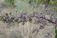 癥狀:是花期的主要病害,同時危害幼果、嫩葉,嚴(yán)重影響果實產(chǎn)量。該病主要為害花序、幼果和嫩葉;ㄐ蛑W钊菀资芨腥,梗上病斑褐色,病部常見白粉狀物,花梗環(huán)縊狀死亡,其上花朵、幼果隨之枯死脫落。嫩葉癥狀多在葉背,病葉常扭曲、畸形。幼果受害,果面出現(xiàn)近圓形的斑點,嚴(yán)重時幼果全部被白粉狀物覆蓋,造成大量落果。